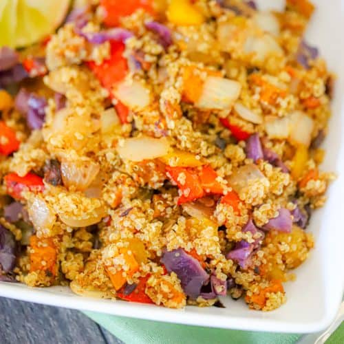 The roasted peppers and onions bring natural sweetness and caramelization that balances the earthy quinoa and tangy lime. You can sauté them for speed or roast them for deeper flavor. Both methods work well, so it comes down to how much time you have.