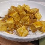 Brown tofu: While sauce simmers, heat 1 tbsp oil in a separate non-stick skillet over medium-high heat. Add cubed tofu in a single layer. Cook a few minutes per side until lightly browned. For crunchier tofu, cook longer or air fry at 400°F for 12-15 minutes.